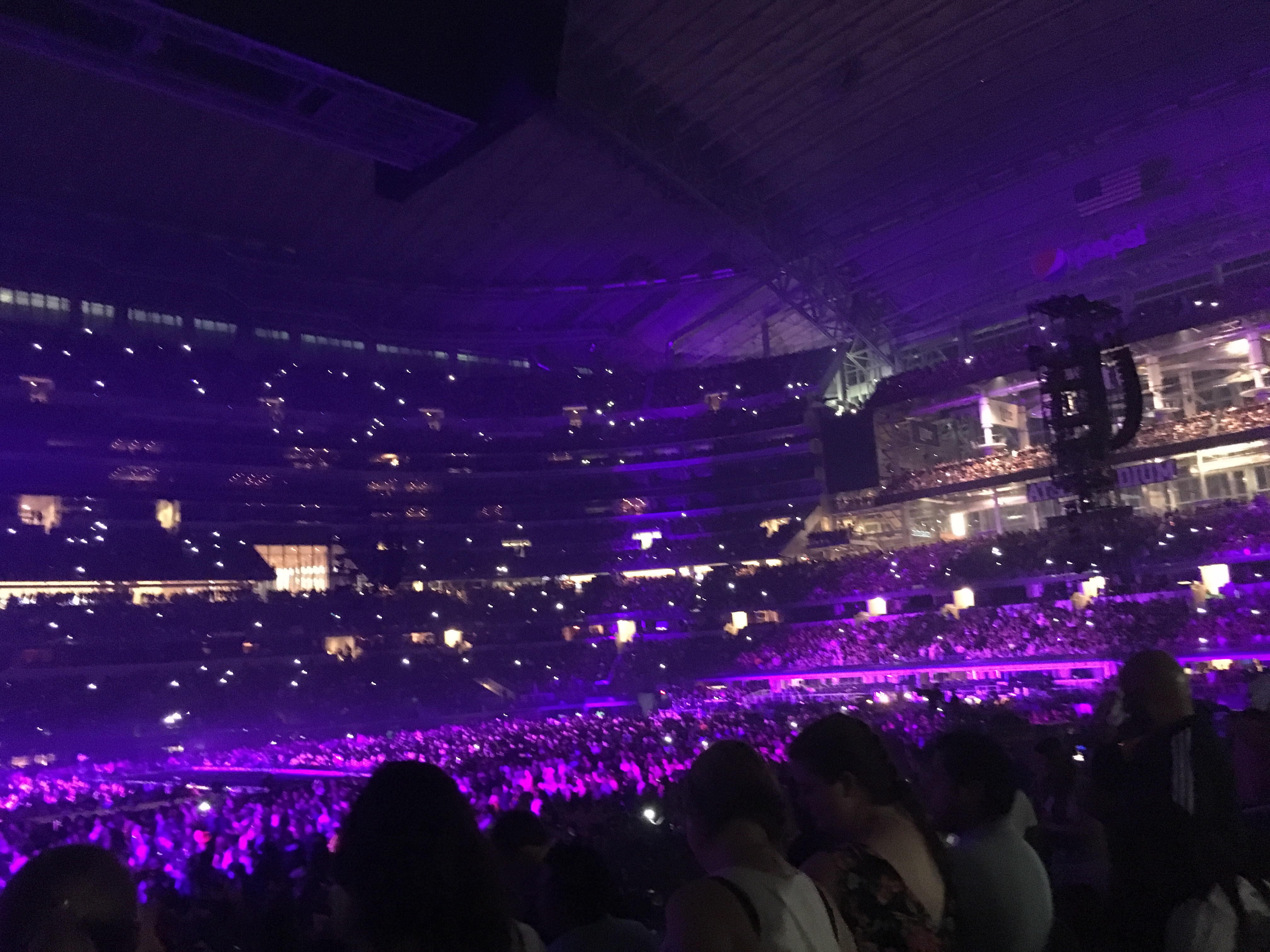 I was on the road for the 7:30 show at 7 and quickly discovered that Beyoncé didn’t come to Dallas – she came to Arlington. What was Dallas thinking when they built this stadium? All that available real estate near downtown AND public transportation and you don’t build your namesake stadium for your namesake team on your own land, in your own city, in your own county? Arlington is a waaaaaay out of the way, but I digress.